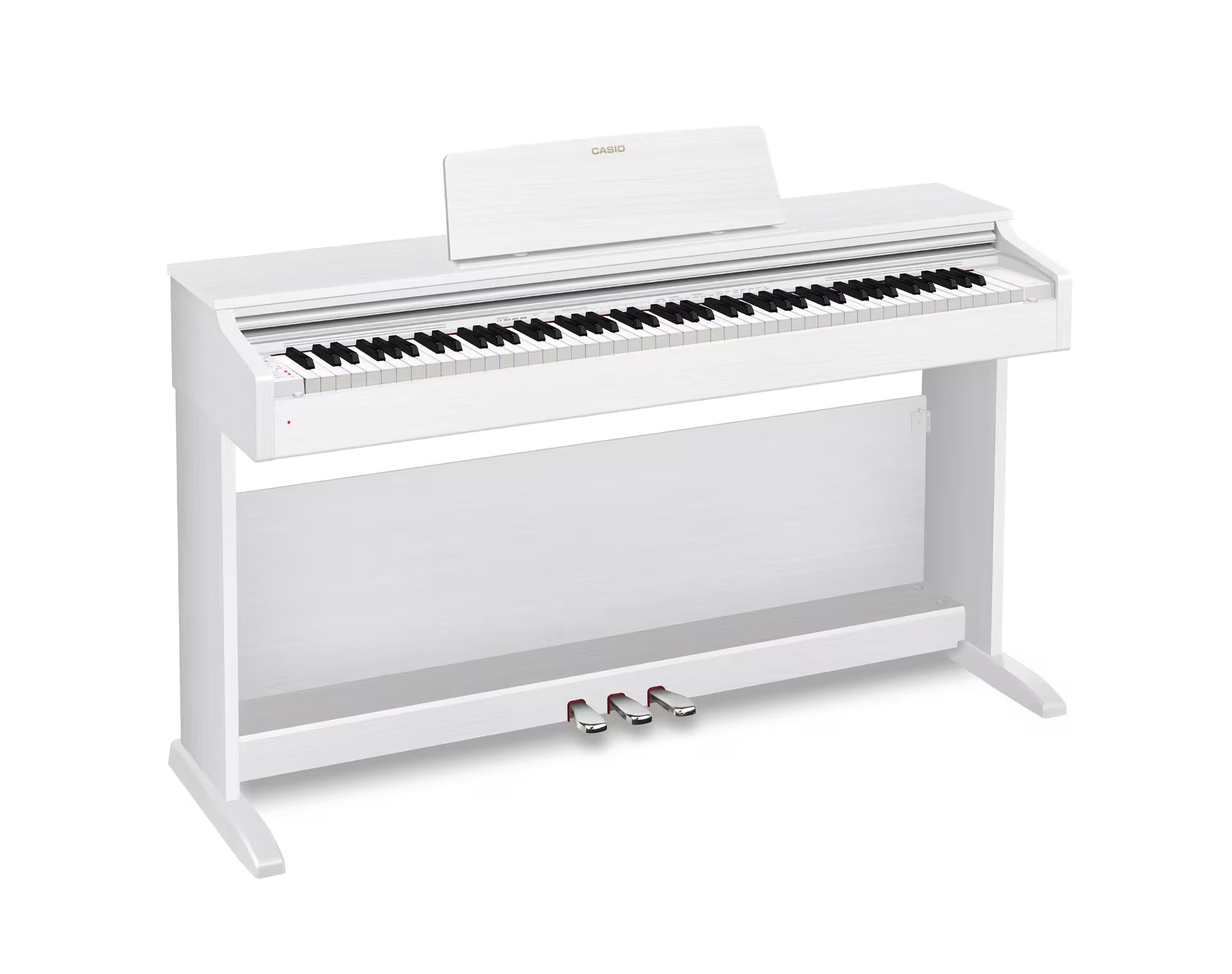 De Casio AP-270 White is een digitale piano met een Tri-Sensor II stepped hammer-action klavier met een afwerking in ivoor en ebbenhout, die een realistische speelervaring biedt over 88 toetsen. Dankzij de AiR multidimensionale transformatietechnologie is de geluidskwaliteit verbeterd, met 192 noten polyfonie en 22 stemmen. Dit model beschikt ook over 60 ingebouwde nummers, MIDI-opname en drie pedalen, waaronder ƩƩn met een halfpedaalfunctie.
